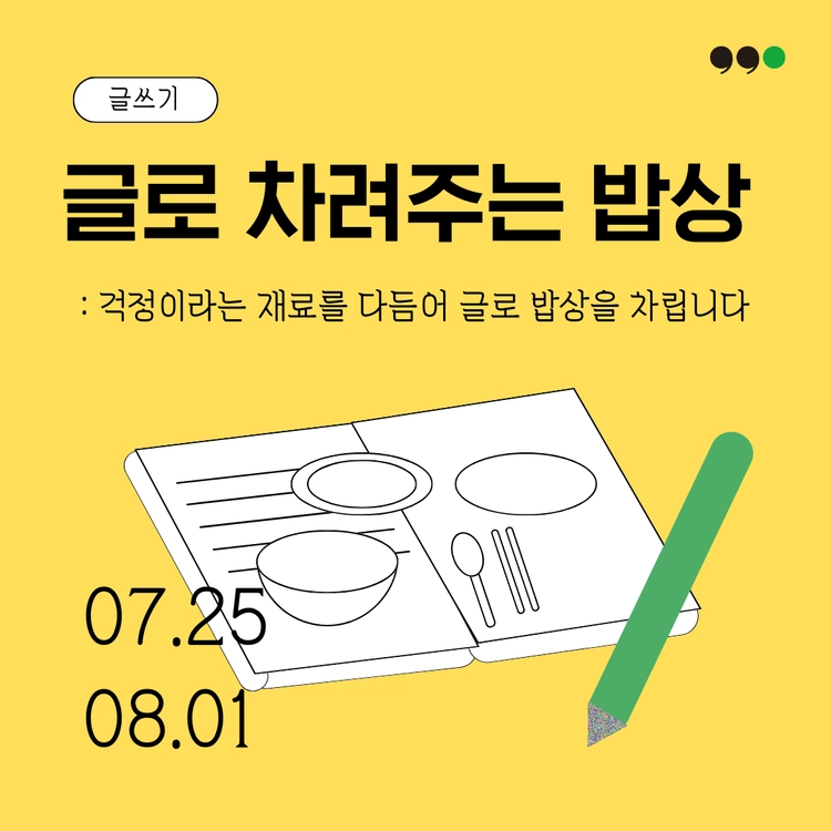 글쓰기 도구로, 서로의 걱정을 재료 손질하듯 다듬어서 먹음직스러운 요리로 완성해 주는 <글로 차려주는 밥상>과 함께 우리의 마음을 따뜻하게 보듬어 보아요!