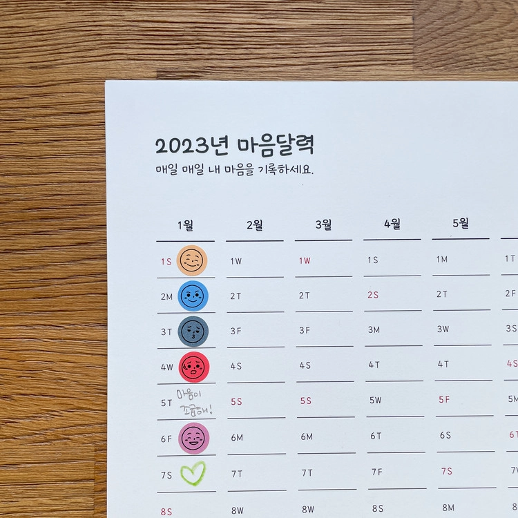 '마음달력'에는 감정스티커를 붙여도 좋고, 직접 적거나 그림을 그릴 수 있습니다.